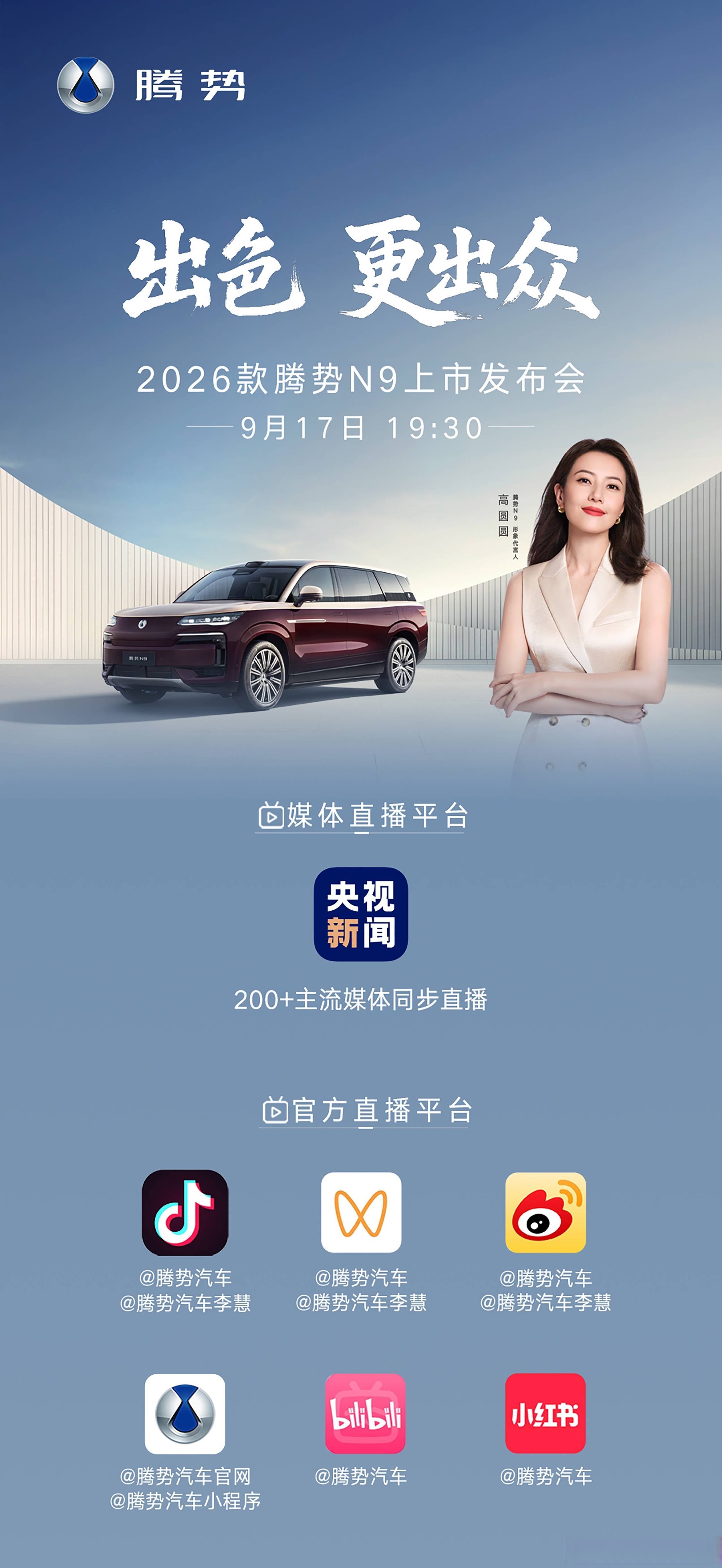 高圆圆身着简约礼服与腾势N9同框,从容微笑展现东方美学,网友直呼"女神与神车,颜值天花板组合"。